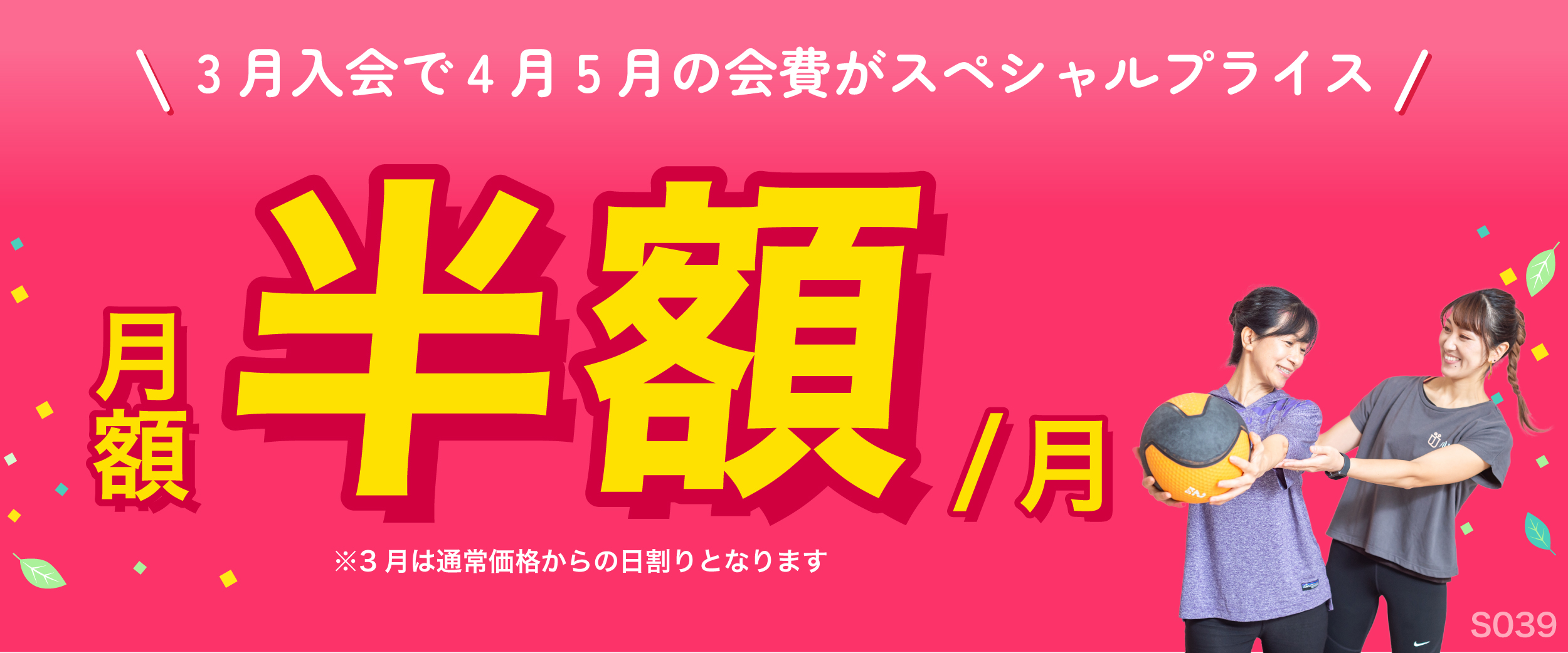 | お持ち物 | スポーツウェア(上下)、 室内用の運動靴、タオル、水分 |