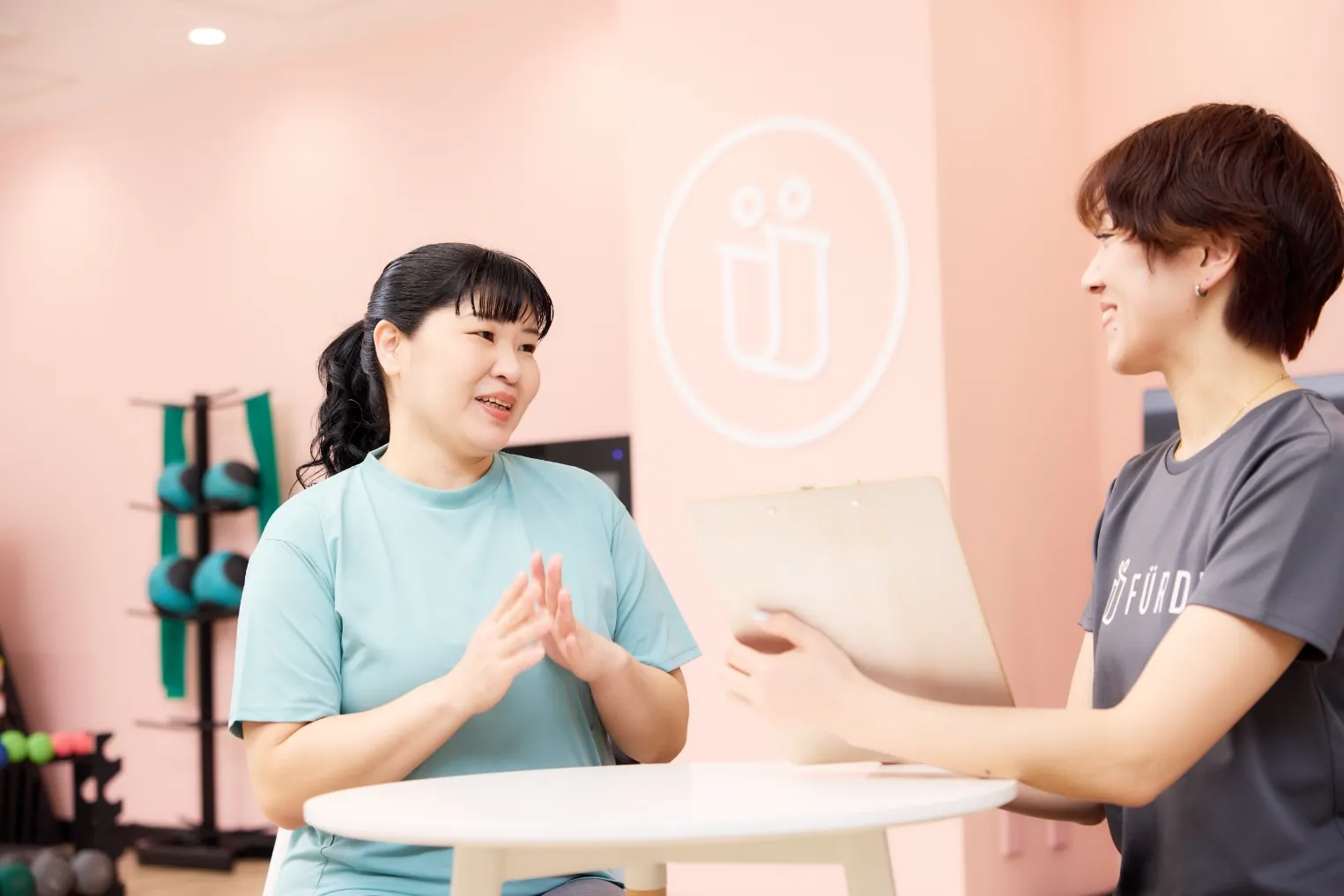 体験当日、来店していただきロッカールームで運動ができる服装にお着替え後、運動を始めようと思ったきっかけやカラダのお悩み等、カウンセリングをさせていただきます。